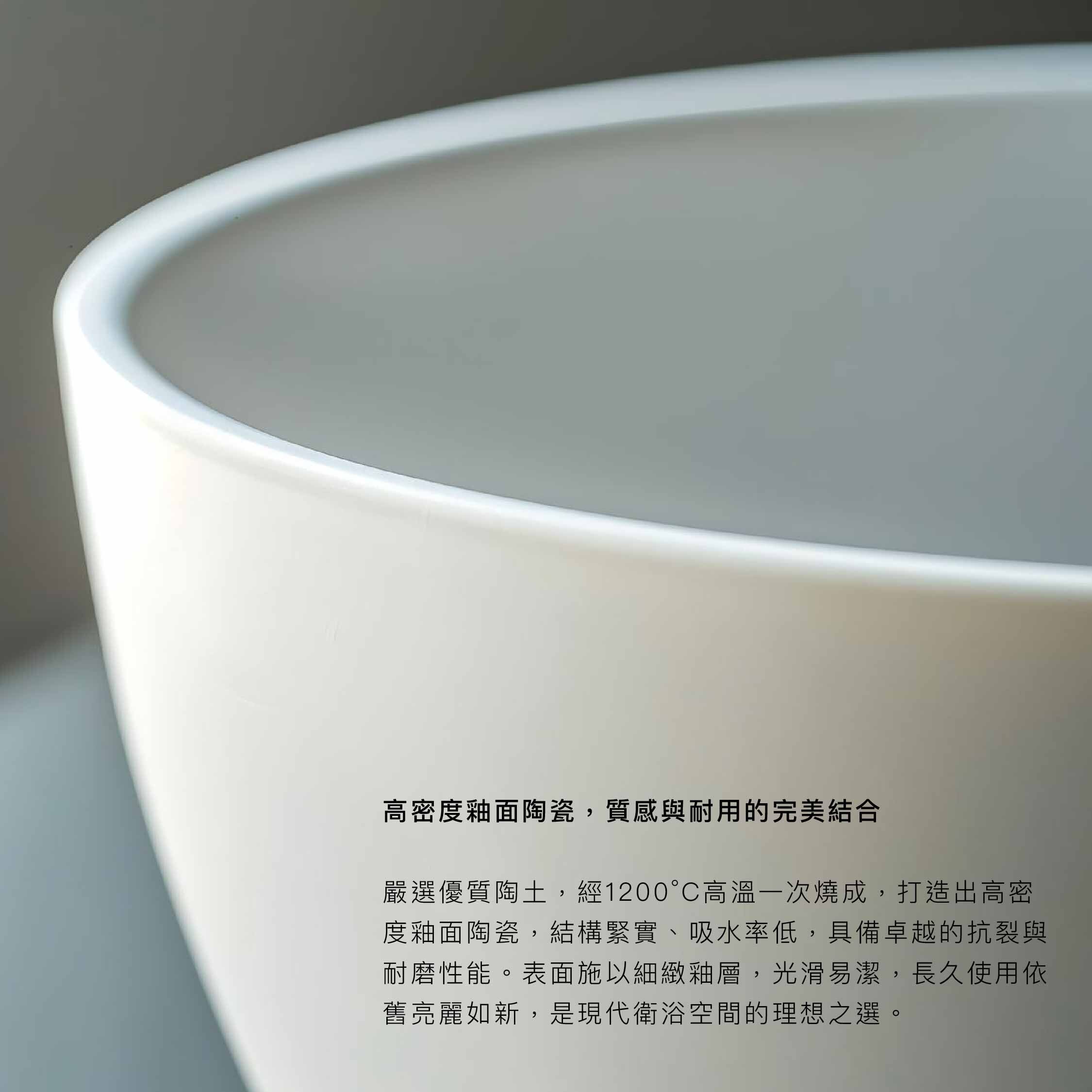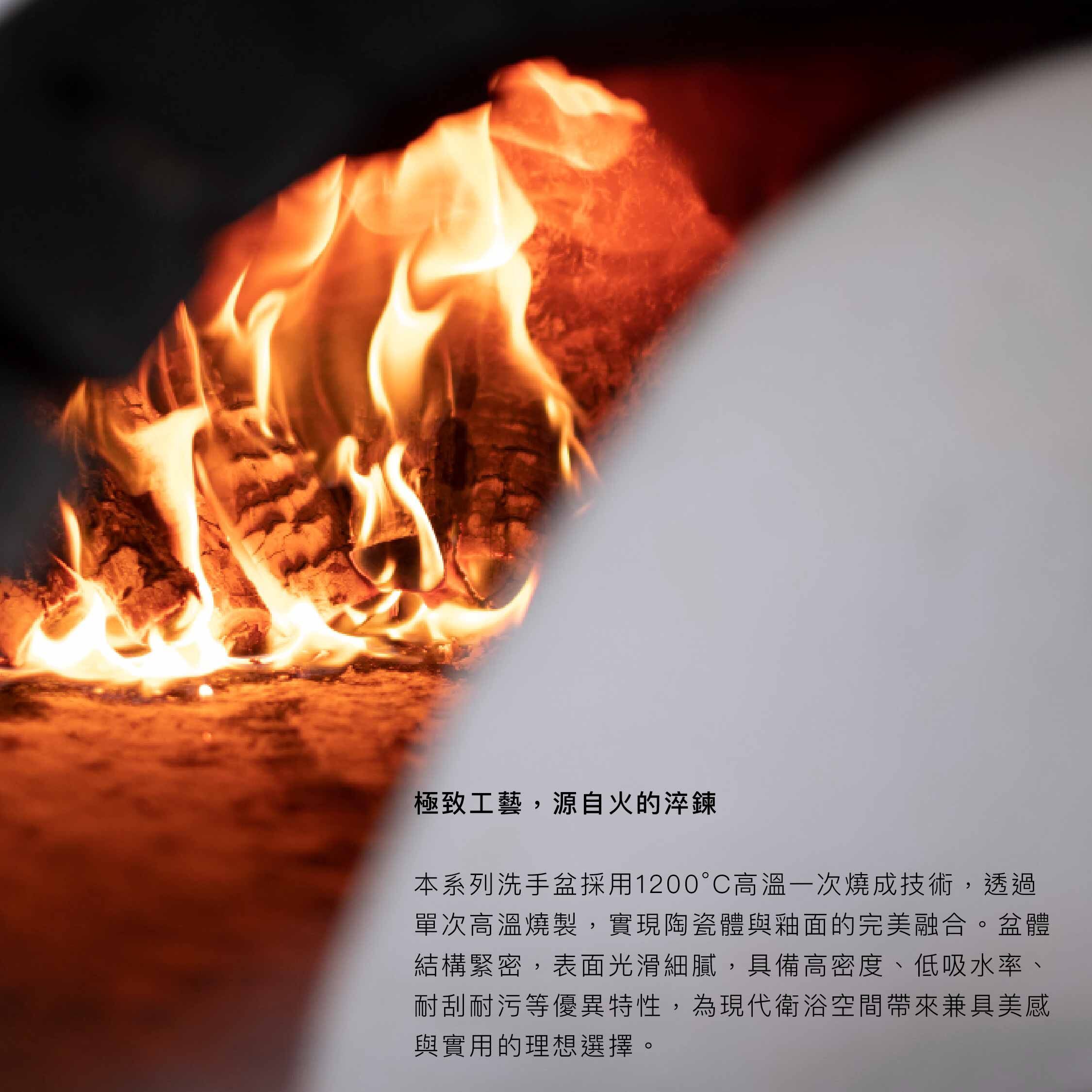 1200°C 高溫單次燒製,搭配霧面釉技術與高密度陶瓷,呈現細緻質感並具備防刮特性,耐用度更高
